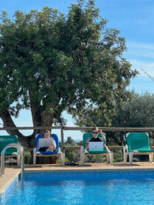Auf Can Agustin liegt gerade dieses besondere Knistern in der Luft. Wer genauer hinschaut, merkt schnell: Die kreative Energie konzentriert sich aktuell in unserem großen Gruppenhaus für bis zu 22 Personen. Dort hat sich bereits zum zweiten Mal ein junges Tech Startup Unternehmen aus den Niederlanden zur Team Workation auf Mallorca eingerichtet und lässt die Internetverbindung heißlaufen.